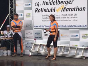 Bei fast optimalen Wetterbedingungen sind am 2. Juli beim Heidelberger Rollstuhl Marathon 14 Rhein-Neckar-Skater gestartet. Bei den Damen kam Michi gleich hinter Katharina Rumpus ins Ziel, die auf dem teilweise neuen Sahneasphalt das Gesamtrennen gewann und damit eine der wenigen Frauen ist, die die Herren auf die hinteren Plätze verwies. Ob das am Heimvorteil lag oder schlicht daran, dass Katharina Weltklasse ist, lassen wir mal so dahingestellt.Michaela, Jutta, und Slawa gewannen jeweils ihre Altersklassen. Christian, Regina und Esther wurden in ihren AK jeweils zweite.