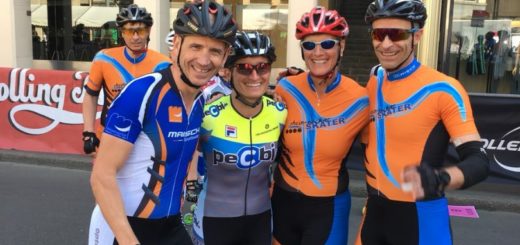 Es gab jeweils ein separates Rennen für Damen und Herren, da konnte man schön das Rennen der anderen verfolgen. 14 Runden waren für den Halbmarathon zu fahren, die ganz ordentlich Kraft kosteten. Immer wieder die Anstiege hoch, die enge Kurve, ein schnelles Rennen und immer wieder Attacken, dazu das Bahnrennen vom Vortag in den Beinen. Sowohl Michi, als auch Thomas konnten sich in der Verfolgergruppe bis zum Ende behaupten, im Zielsprint reichten bei beiden die Kräfte leider nicht mehr aus, um an ihren jeweiligen Konkurrenten vorbeizuziehen.