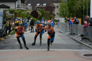 Der Verein Speedskating Liechtenstein hat ein neues Rennen auf die Beine gestellt, welches auch gleich in die BWIC-Wertung mit aufgenommen wurde. Wir erlebten eine sehr gut organisierte Veranstaltung in Ruggell mit einem Halbmarathon und anschließendem Teamzeitfahren. Die Strecke war ein Rundkurs von 2,1 km, die Hälfte davon durch ein Wohngebiet, die andere Hälfte über die Felder. Größtenteils auf gutem Asphalt, kurze Abschnitte gepflastert – aber kein Problem. Und alles topfeben, keine Steigungen. Die einzige „Schikane“: wir mußten entgegen der üblichen Wettkampfrichtung fahren – nämlich rechts herum!