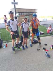 Und dann? Jutta, Michi und Marius inkl. der mitgereisten Fans trauten ihren Augen kaum, was sich da auf diesem wunderschönen Gelände bot. Nichts, aber auch gar nichts, was auf eine EM hindeutete (die Organisatoren sollten sich mal ein Beispiel an EBM Papst nehmen). Registrierung, Warmlaufen und dann in den Startbereich (wo war der noch mal?) Und schon ging’s los. Leider war auch die Rundenzählerei nur den Führenden der jeweiligen Altersklassen und ansonsten den Mitgereisten neben der Strecke vorbehalten, so dass sowohl Jutta als auch einige andere Starter es (fast) verpasst hätten, tatsächlich 26 Runden zu fahren (nach 25 Runden waren schon knapp 42 km rum). Aber wozu sind denn Fans da?