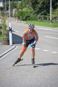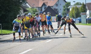 Da von den Konkurrenzteams der Damen aus Ba-Wü keines am Start war, konnten wir das Ganze recht entspannt angehen. Michi hielt sich gut in der zweiten Verfolgergruppe, nachdem sich die schnellen Schweizer schon früh nach vorne absetzten. Leider kam es in der dritten Runde zu einem Sturz, bei dem zum Glück nichts schlimmeres passiert ist, aber die Gruppe war weg und die letzten 1,5 Runden mußte sie alleine zuende fahren. Trotzdem gab es den 1. Platz in der AK.