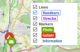 - wenn Ihr Informationen wie „Einkehrmöglichkeiten“ nicht sehen wollt, nehmt einfach den entsprechenden „Haken“ raus