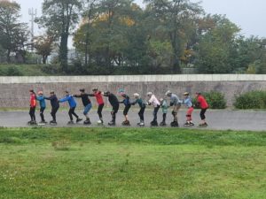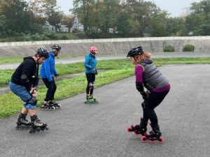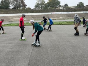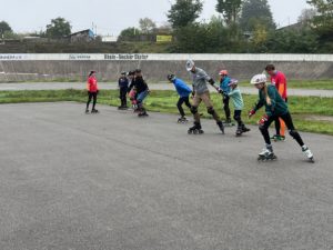 Gekommen waren 10 Kinder, Jugendliche und junge Erwachsene mit ihren Betreuern, um viele Elemente des Inline-Sports, wie sauberes Stehen auf Skates und der richtige Abdruck, Bremsen und aus dem Wettkampfprogramm das Parcours-fahren, Rennsimulation mit Starttechnik zu lernen und zu üben. Dank tatkräftiger Hilfen seitens Instruktoren und Inline Skater/innen aus der Trainingsgruppe konnten die jungen Menschen bestens betreut werden. Schon nach kurzer Zeit zeigten Sie, wie viel sicherer Sie durch diesen Intensivkurs wurden.